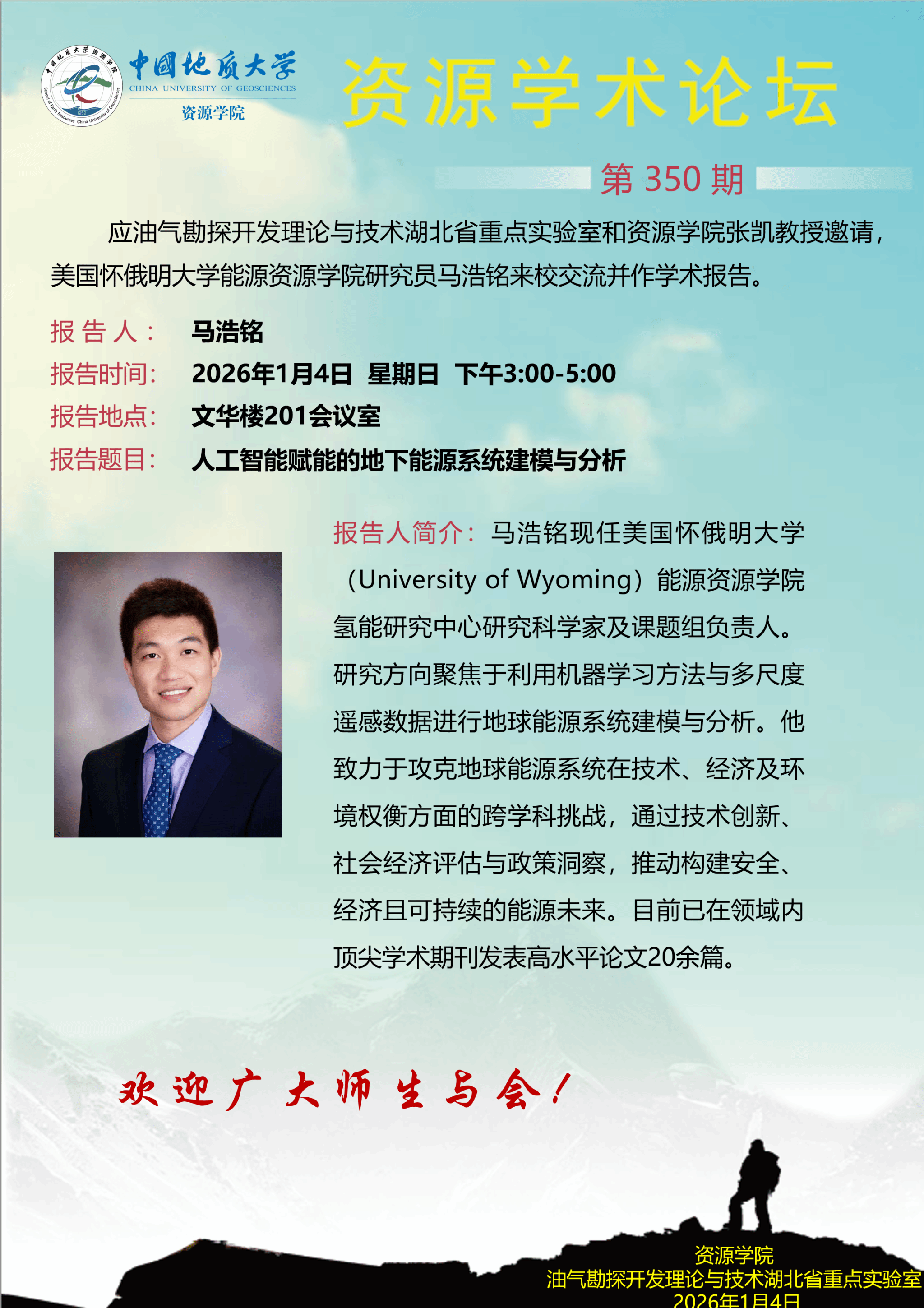 【1月4日】第350期资源学术论坛:马浩铭学术报告
