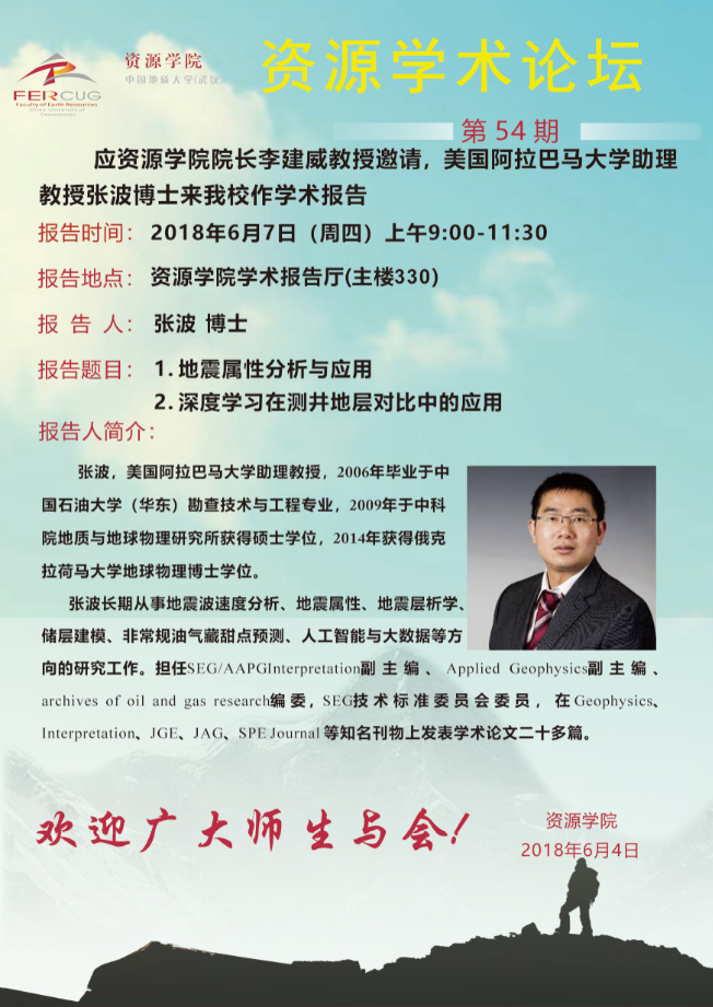 [6月7日]第54期资源学术论坛:张波学术报告