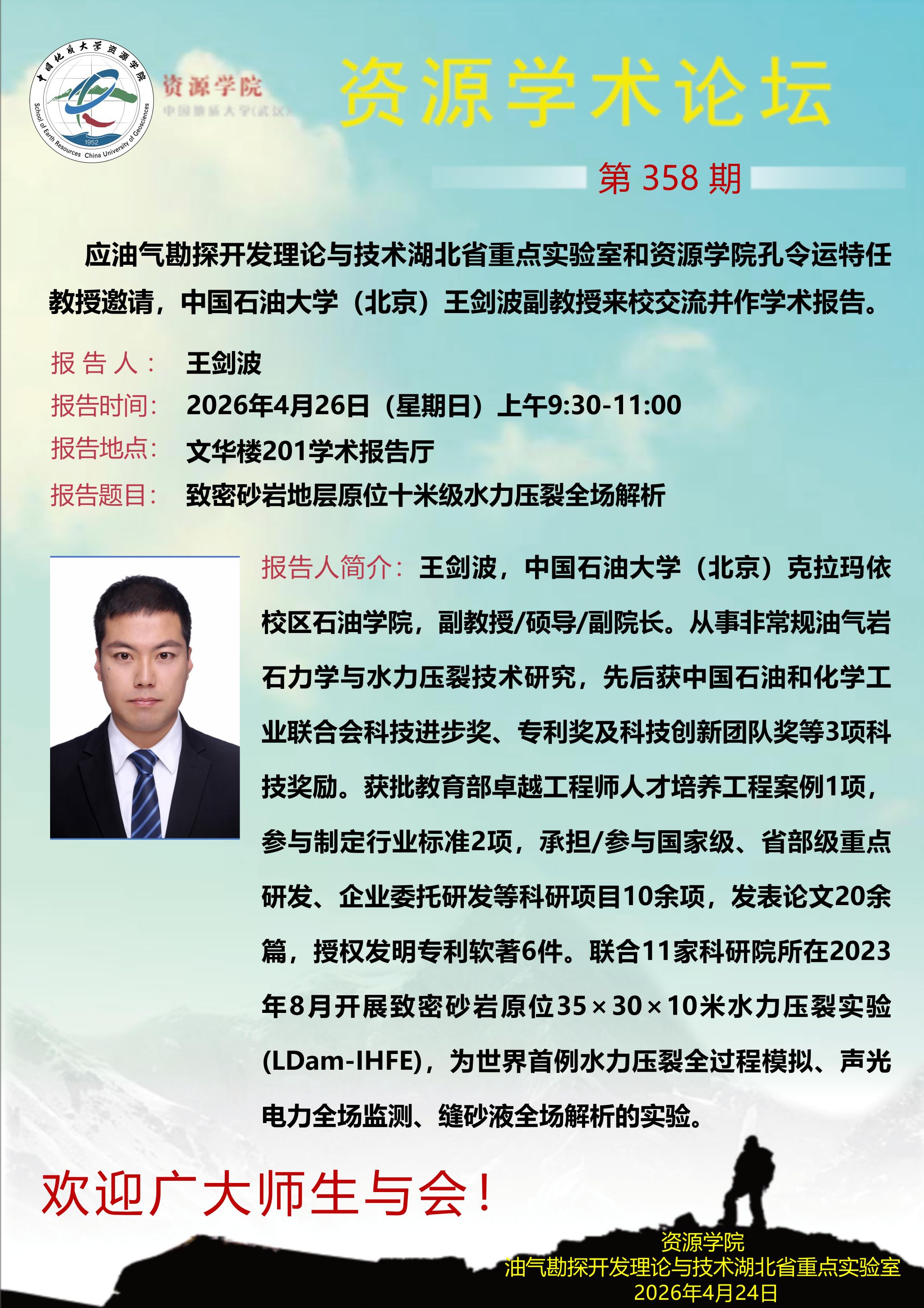【4月26日】第358期资源学术论坛:王剑波学术报告