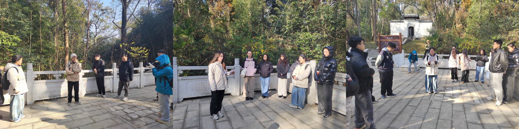 参观完项英雕像、熊公祠后,支部结合专业特点和党史学习开展户外交流。石油工程专业本科生党支部书记韩贻皓讲解了项英同志的生平经历与革命事迹;油藏智能与新能源研究生党支部书记陈树介绍了熊廷弼的生平经历、历史功绩;油气钻采研究生党支部书记刘玉龙结合专业,讲解了江夏地区的沉积地层序列、构造演化历史与主要的地质构造和地貌现象。