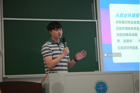 刘睿作《就业形势》专题报告。他介绍了当前高校就业总体情况、地矿行业就业形势和91短视频