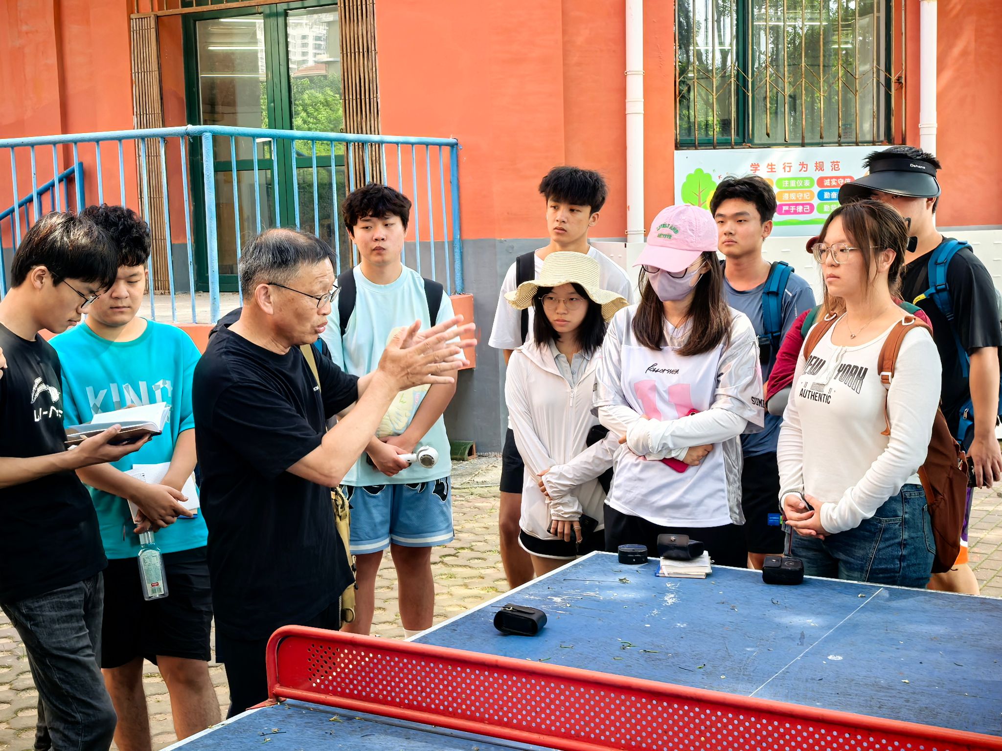 集中教学结束后,由带队老师带领各班级到操场进行分班教学,在老师们的指导下,同学们进行罗盘使用实操训练,调校磁偏角、测产状、测方位……同学们认真聆听、不断尝试,并进行实际操作演示。