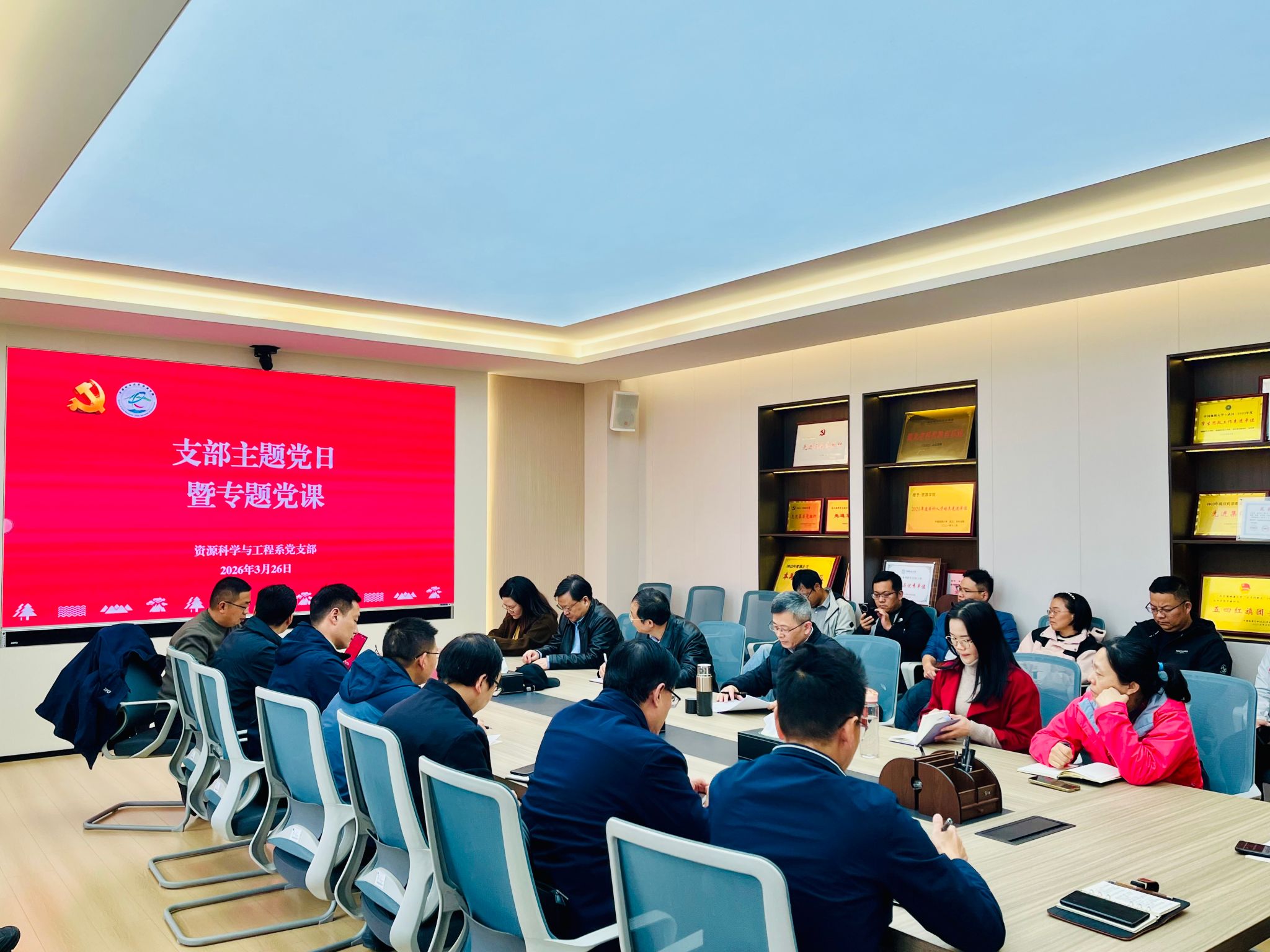 资源科学与工程系党支部在主楼330会议室开展支部主题党日。校长李建威为支部教师讲授专题党课,深入解读全国两会精神,围绕树立和践行正确政绩观、推动学校高质量发展作交流分享。党支部书记付乐兵主持会议。