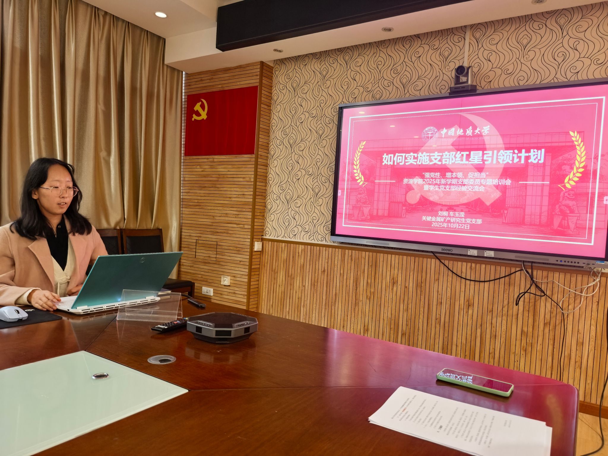 关键金属矿产研究生党支部支委车玉滢介绍支部实施“红星引领计划”的具体做法,强调根据党员成长经历与优势特长进行科学报岗,引导党员在实践中践强化作用担当。