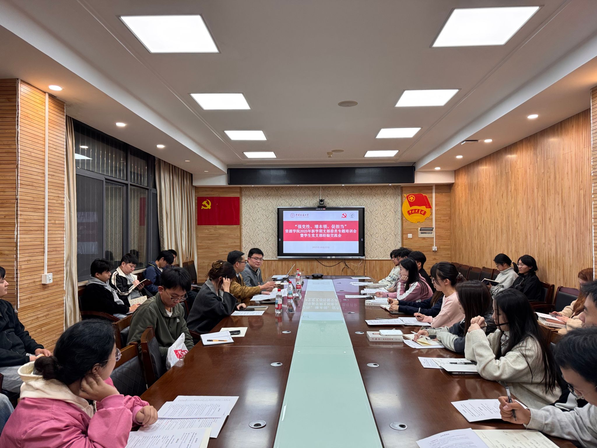 党委副书记谭文伦、学生党建办公室主任彭鑫、研究生辅导员林心悦、党建兼职辅导员张少龙,以及全体学生党支部书记、支委和学生党建办公室工作人员共同参会。会议由彭鑫老师主持。