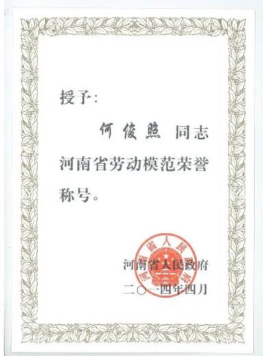 何俊照校友参加工作以来,始终秉持着地矿系统的“三光荣”传统和“四特别”精神,艰苦奋斗,锐意进取,创造出令人称道的不凡业绩。先后被评为“河南省劳动模范”、“河南省委省直机关优秀共产党员”、“河南省最美地质人”提名奖、“河南省优秀勘察院长”,两次被评为“河南省地矿系统劳动模范”,连续5年“河南省优秀项目经理”,连续多年被评为单位劳动模范、优秀党员、先进工作者。
